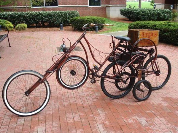 An aqua tallbike from C.H.U.N.K. 666 (mutant bicycle jaunting club and tallbike youth brigade with members in Portland, Oregon and Brooklyn, New York)